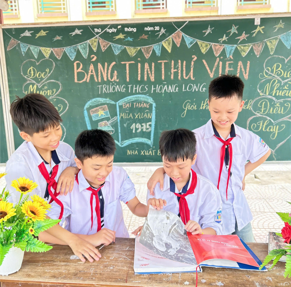 Trong cái nắng vàng nhẹ của một sáng đầu hè, bước chân vào khuôn viên trường THCS Hoàng Long, điều khiến bất cứ ai cũng phải ngỡ ngàng không phải là những dãy lớp học khang trang hay sân trường rợp bóng cây – mà chính là sự hiện diện tinh tế và lan tỏa của một "thư viện không tường", nơi tri thức len lỏi vào từng góc nhỏ, từng nhịp sống thường ngày của thầy trò nhà trường.